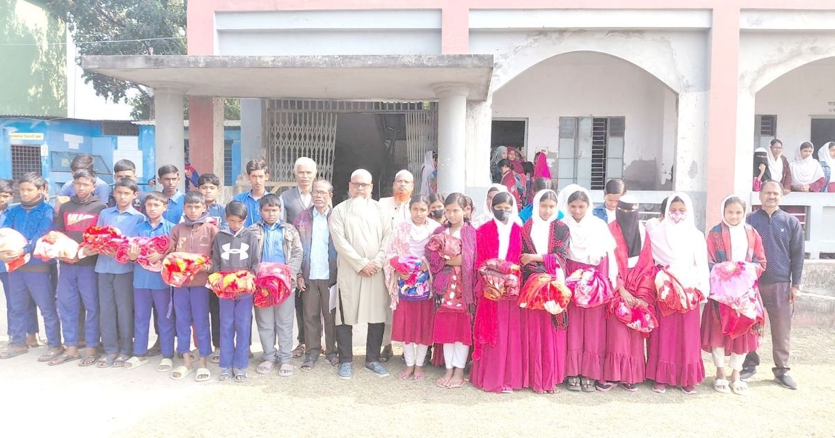 শ্যামনগরে শিক্ষার্থীদের মধ্যে কম্বল বিতরণ