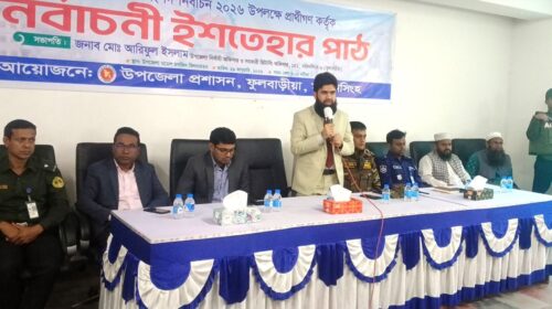 ফুলবাড়িয়ায় প্রার্থীদের নির্বাচনী ইশতেহার ঘোষণা