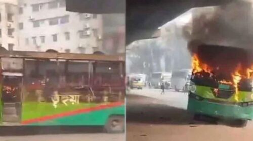 উত্তরা পার্কিং করা বাসে যান্ত্রিক ত্রুটিতে আগুন