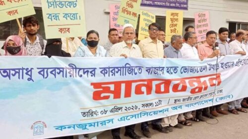 বাজারে ভোজ্যতেলের কৃত্রিম সংকট ও মূল্যবৃদ্ধির প্রতিবাদে ক্যাবের মানববন্ধন