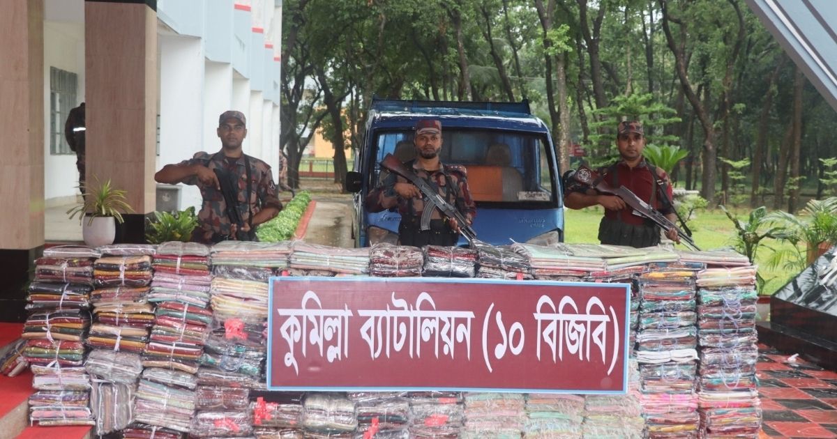 ভারতীয় শাড়ি ও থ্রি-পিস জব্দ করেছে বর্ডার গার্ড বাংলাদেশ (বিজিবি)।